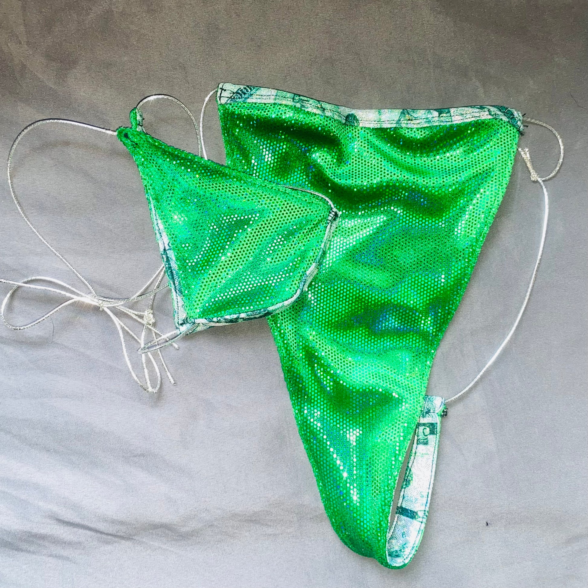 The Big Bank Energy Microkini features an all-over money print designed to turn heads and raise the temperature. With ultra-minimal coverage, adjustable tie sides, and a barely-there fit, this piece was made for baddies who move like a luxury expense.